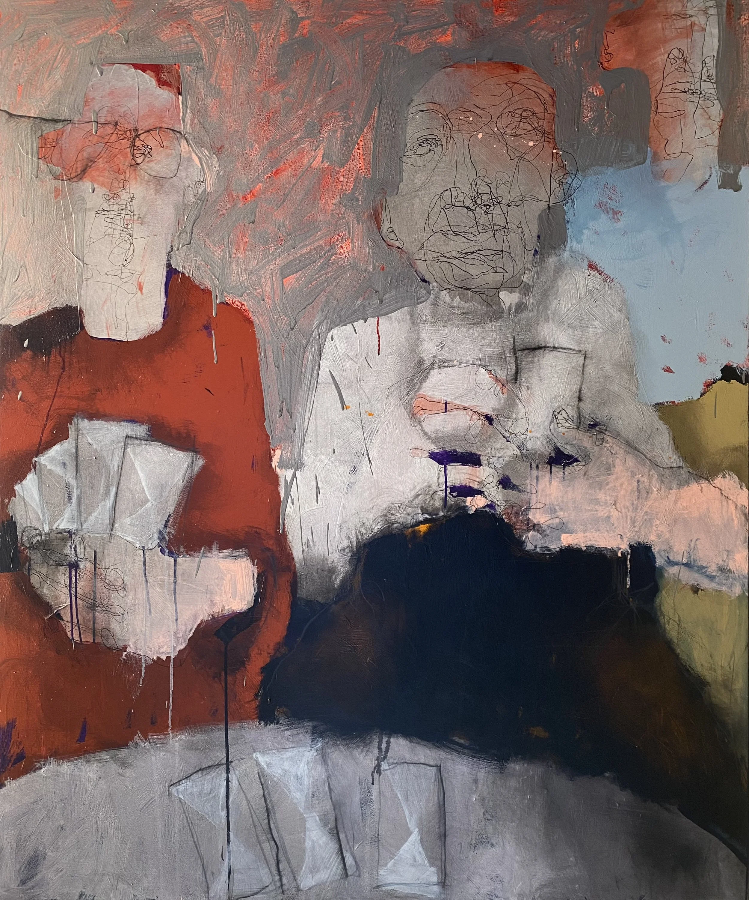 THREE OF US | 60W x 50H inches | mixed media on canvas | 2023
