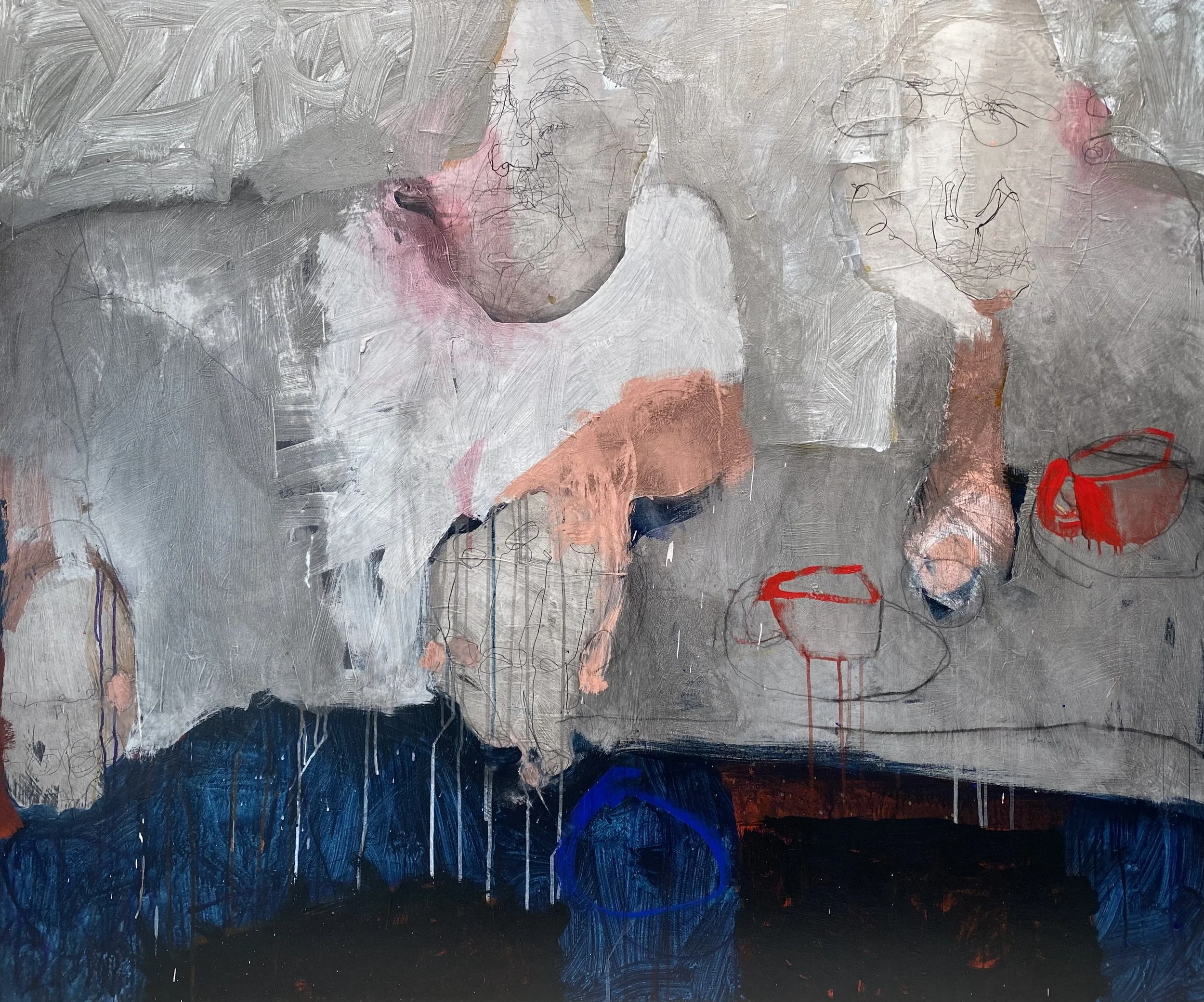 THREE OF US | 60W x 50H inches | mixed media on canvas | 2023